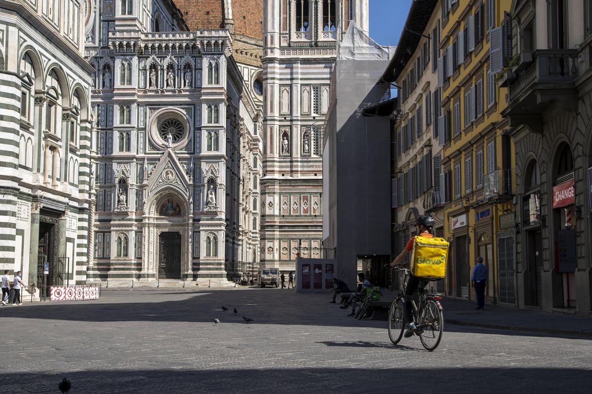 Vor der Pandemie drängten sich hier allabendlich die Massen. Genauso wie auf der Piazza della Signoria vor dem Palazzo Vecchio, wo nun Radler zwischen den wenigen Paaren und Familien hindurch kurven.