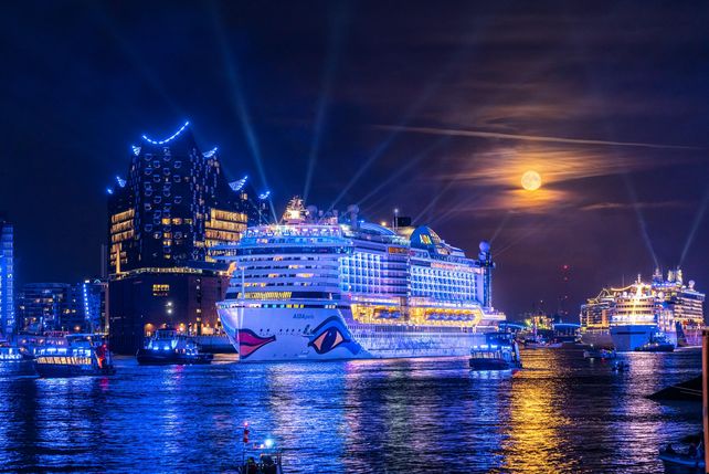 AIDAperla führte die Parade an, gefolgt von MS Europa, Mein Schiff 4, dem World Explorer und der MSC Preziosa. Ab 20 Uhr bereits konnten die Besucher die Manöver verfolgen, mit denen die Schiffe ihre Startpositionen im Hafen einnahmen; pünktlich um 21.15 Uhr begann die Parade vor der Kulisse des durch den Blue Port Hamburg blau illuminierten Hafens.