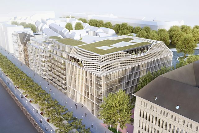 In dem Baukomplex, der aus insgesamt drei Gebäuden besteht, sind neben dem Büro- und Verwaltungssitz 23 Eigentumswohnungen geplant. Ebenfalls an der Rheinseite entstehen 28 altersgerechte Wohnungen. Zur Berger Allee mit Blick auf den Speeˈschen Graben mit Park, Schwanensee und Kaiserteich ist eine Pflege- und Betreuungseinrichtung mit zwölf Zimmern vorgesehen.