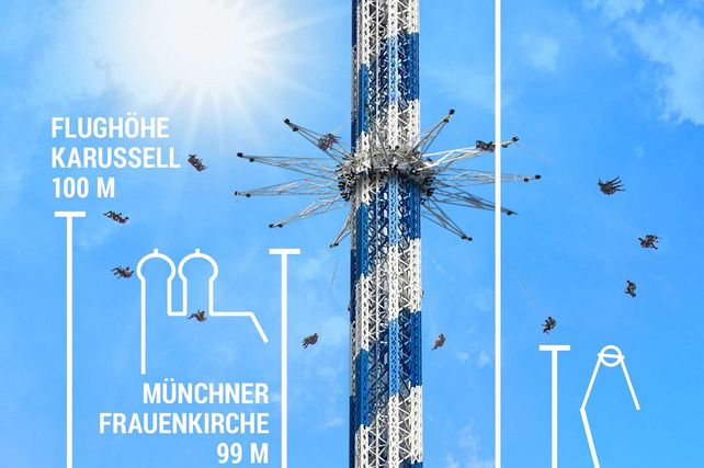 Die Fahrgäste werden während der drei bis vier Minuten langen Fahrt auf eine Flughöhe von 100 Metern gebracht. Nach Angaben des österreichischen Herstellers sind das etwa zehn Meter mehr als beim Karussell in Florida, das von derselben Firma gebaut und im Juni 2018 in Betrieb genommen wurde. (dpa)