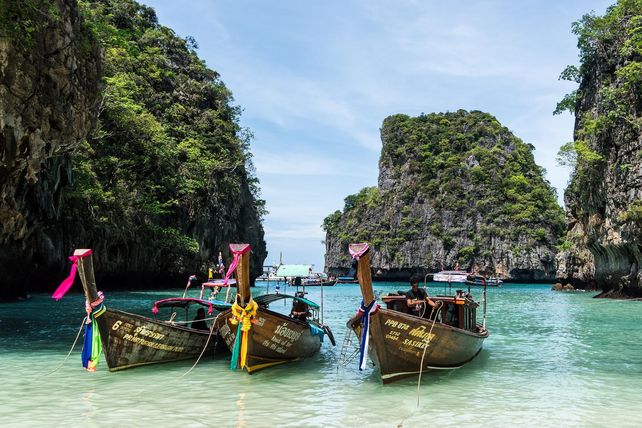 - Platz drei geht nach Thailand: Die atemberaubende Kulisse der thailändischen Insel Koh Phi Phi animiert jährlich zahlreiche Touristen, lange Flüge in Kauf zu nehmen, um sich einmal zu fühlen wie Leonardo DiCaprio in The Beach. Bis heute reißen die Besucherströme nicht ab – was leider nicht nur positive Auswirkungen hat. Aufgrund von Korallenschäden wurde im letzten Jahr beschlossen, dass der Strand in der Nebensaison zwischen Juni und September geschlossen wird.