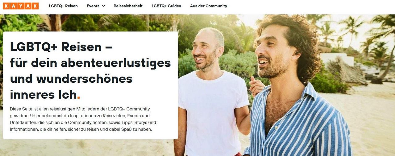Kayak hat ein neues Reise-Portal gestartet, das speziell von und für LGBTQ+-Reisende(n) entwickelt wurde. Dieses soll als aktuelle und organisch wachsende Informations- und Inspirationsquelle für internationale und Inlandsreisen dienen.