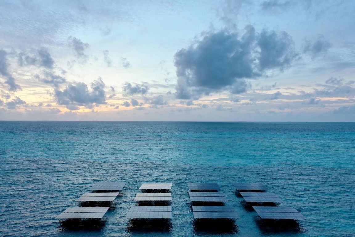 Malediven: Schwimmendes Solarsystem im Meer im LUX* South Ari Atoll Resort & Villas