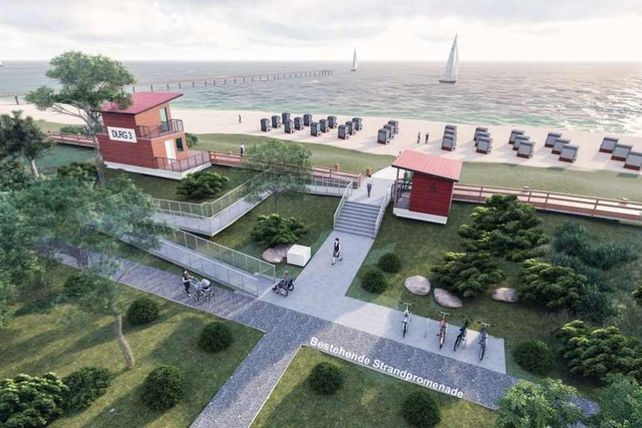 Auf einer Länge von etwa 2200 Metern soll parallel zur alten Promenade hinter dem Deich nun direkt über der Hochwasserschutzdüne ein drei Meter breiter Fußweg errichtet werden. Dazu werden vorgefertigte Rahmenkonstruktionen aus Stahl auf Pfählen verankert und mit Hartholz-Planken belegt. Auf gesonderten Plattformen sollen entlang der neuen Promenade Strandhäuser für Strandkorbvermieter und die Deutsche Lebens-Rettungs-Gesellschaft (DLRG), die in der Badesaison den Strand bewacht, errichtet werden. Nebeneffekt des Neubaus: Der bislang über die Durchfahrtsstraße geführte Ostsee-Radweg wird auf die bestehende Promenade verlegt.