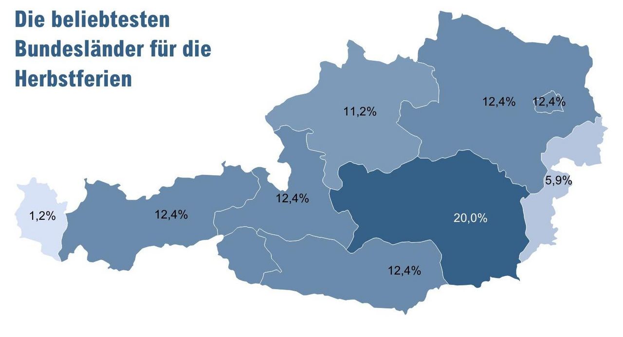 Gleich sechs Destinationen schafften den Sprung auf das Siegerpodest. Angeführt vom Seriensieger Steiermark auf Platz 1 teilen sich Wien, Niederösterreich, Kärnten, Salzburg und Tirol Platz 2. Noch unentschlossen, ob sie die freien Tage in der goldenen Jahreszeit für Urlaub nutzen oder nicht, ist rund ein Viertel der Befragten.