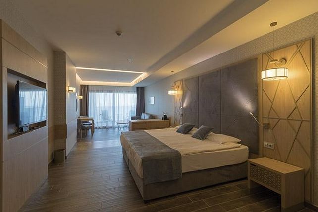 Das Hotel befindet sich an der Küste des Schwarzen Meeres und verfügt über einen privaten Strandbereich mit direktem Zugang nur für Gäste inklusive Liegen und Sonnenschirme. Die Anlage verfügt über 335 Zimmer, die mit Klimaanlage, Wasserkocher und Minibar ausgestattet sind und einen Blick auf das Meer bieten.
