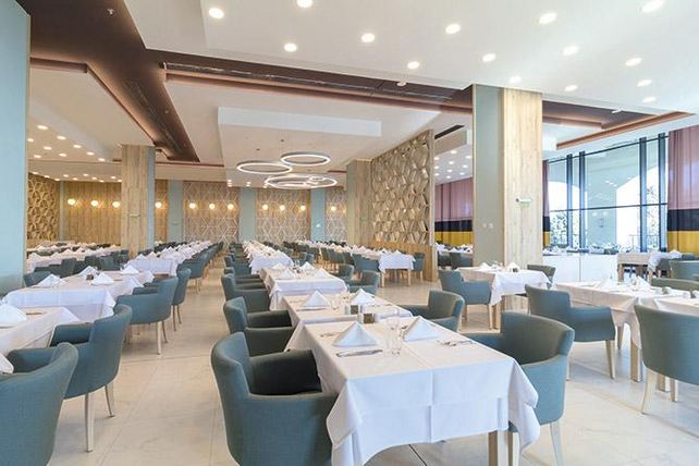 Neben dem Hauptrestaurant gibt es ein Steak House und zwei Themenrestaurants, das “Krystal“ mit Fusionsküche und das “Sunrise“, ein Strandrestaurant mit Bar und typischen Gerichten der mediterranen Küche. Darüber hinaus können die Gäste zu jeder Tageszeit die Cafeteria und Eisdiele “Capuchino“ sowie die Poolbar “Lounge 24“ aufsuchen.