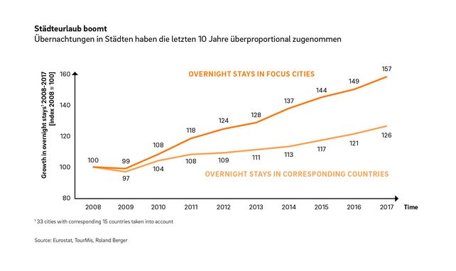 Die Hintergründe legt Dr. Vladimir Preveden, Managing Partner bei Roland Berger Österreich und Co-Autor der neuen europaweiten Studie „European city tourism study 2018: Protecting your city from overtourism“, offen: „Das geschieht ja nicht von heute auf morgen und es wirken immer mehrere Faktoren zusammen“, verweist er auf Ausnahmesituationen wie in Amsterdam oder Lissabon. Einer davon ist der anhaltende Trend zum Städteurlaub: Stiegen die Nächtigungen in den untersuchten Ländern in den vergangenen 10 Jahren um 26 Prozent, nahmen sie in Städten mehr als doppelt so schnell zu. Eine Entwicklung, die zusätzlich durch die Sharing Economy forciert wird.