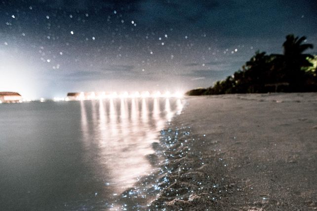 Dass die Malediven einige großartige Selfie-Spots hergeben, ist kein Geheimnis. Aber in einigen Ecken des Landes, genauer gesagt auf den Inseln Vaadhoo, Mudhdoo und Rangali, kann man ein atemberaubendes Naturspektakel erleben. Hier erstrahlt das Meer im Dunkeln in einem leuchtenden Silber-blau. Hervorgerufen wird dieses Schauspiel von winzig kleinen Organismen, Meeresleuchttierchen, die zu Biolumineszenz fähig sind.