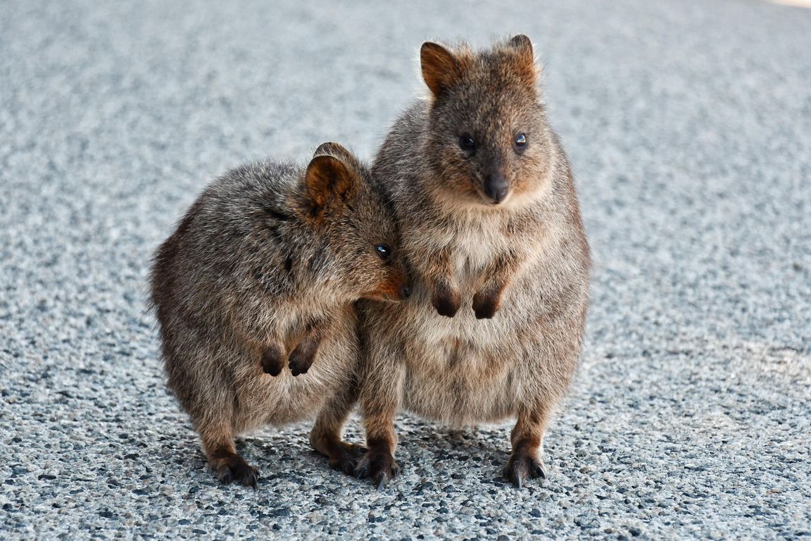 … das muss man den Quokkas nicht zweimal sagen. Denn sie gelten als die glücklichsten Tiere der Welt und haben immer ein Lächeln auf dem Gesicht. Die fröhlichen Kurzschwanzkängurus leben im Südwesten Australiens, vor allem auf der kleinen Insel Rottnest Island vor der westaustralischen Hauptstadt Perth. Diese Insel verdankt sogar ihren Namen (deutsch: „Rattennest“) den Quokkas, da diese zunächst für große Ratten gehalten wurden.