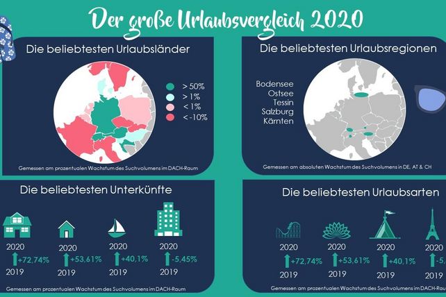 Mehr als jeder dritte Deutsche entschied sich dazu, aufgrund der Corona-Pandemie Urlaub im eigenen Land zu machen. 40 Prozent der Reisenden zog es trotz mehrfacher Reisewarnungen sogar ins europäische Ausland. Doch welche Länder können im Vergleich zum Vorjahr besonders begeistern und wo blieb der Touristenansturm 2020 aus? Travelcircus hat die Daten für Sie zusammengefasst: