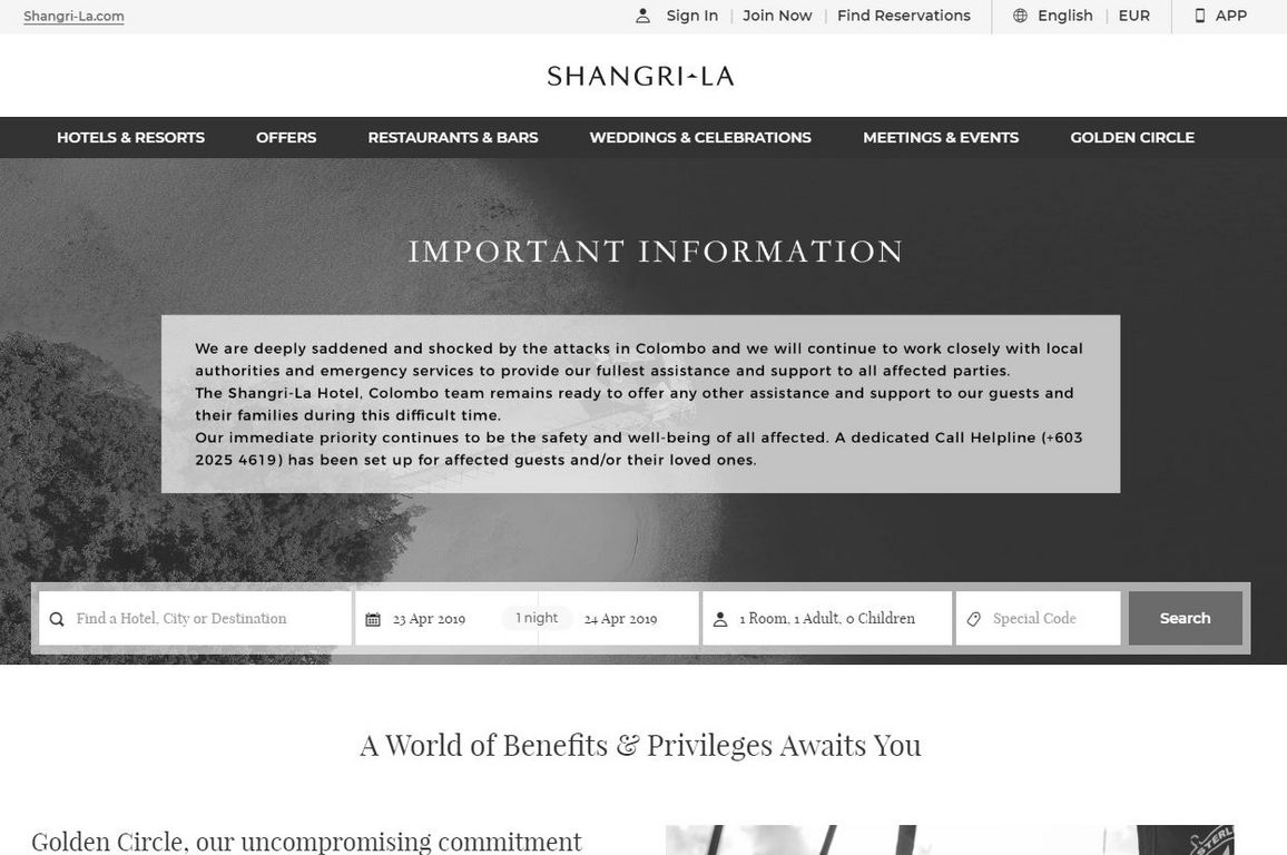 Die  Hotelgruppe Shangri-La und das Cinnamon Grand-Hotel veröffentlichten Statements auf den Homepages der Webseiten der Herbergen und bringen die Trauer der Unternehmen zum Ausdruck.