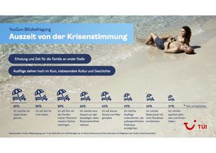 An der Spitze der Urlaubsmotive steht die Erholung. Zwei Drittel der Befragten wünschen sich durch den Urlaub eine Auszeit vom Alltag. Die überwältigende Mehrheit will sich etwas Gutes gönnen (85 Prozent), Zeit für sich oder Zeit mit dem Partner bzw. der Familie verbringen (je 80 Prozent). Zwei Drittel möchten vor allem Sonne, Strand und Meer genießen. Die Kombination von Badeurlaub und Rundreise interessiert 43 Prozent.