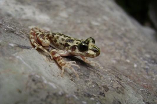 Bei einem Urlaub wird man dieses Exemplar wohl eher nicht zu Gesicht bekommen: die Mallorca Geburtshelferkröte gilt als seltenste Amphibie Europas. Ihr Lebensraum ist an den Bächen des Tramuntana-Gebirges. Da sie so schwer zu entdecken ist, weiß man noch gar nicht lange, wie sie überhaupt aussieht: nämlich grün-ocker gesprenkelt und mit Glubschaugen. Und auch wenn sie nur vier Zentimeter groß ist, erregt sie Aufsehen. Denn sie ist sehr laut und gibt Töne von sich wie ein Hammer, der auf etwas Hartes schlägt.