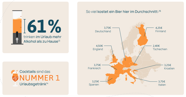 In Bezug auf persönliche Gewohnheiten im Urlaub gaben 61 Prozent an, mehr Alkohol zu konsumieren als zu Hause, wobei der Cocktail mit 59 Prozent das beliebteste Urlaubsgetränk ist.