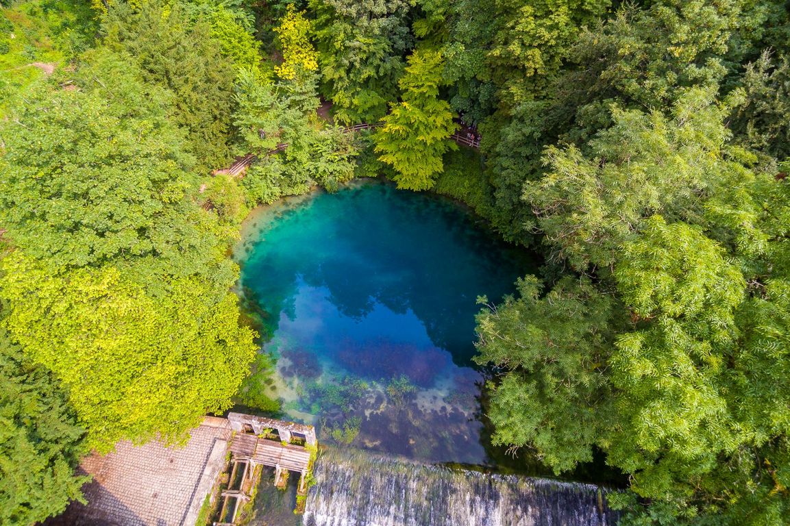 Der Blautopf in Baden-Württemberg, eine türkisfarbene Karstquelle.