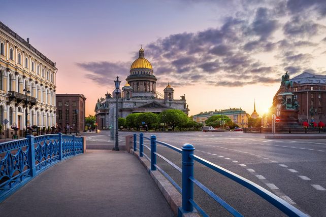 Sankt Petersburg wird gerne auch als „Venedig“ oder „Amsterdam des Nordens“ bezeichnet und das aus gutem Grund. Die russische Hafenstadt wartet mit zahlreichen Brücken und Kanälen auf. In ihrem Stadtkern führt über den Fluss Moika bis vor den Marienpalais ein ganz besonderes Exemplar: die Blaue Brücke. Sie wurde 1737 einst als hölzerne Zugbrücke errichtet und ist bis heute die breiteste Brücke in Sankt Petersburg. Durch eben diese Breite war sie damals ideal für den Handel geeignet. Im Laufe der Zeit wurde die Blaue Brücke immer wieder umgebaut und neu designt, doch der kobaltblaue Gusseisenbogen ist letztendlich geblieben.