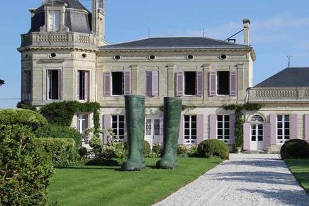 Kurz nach der Einfahrt zum Schloss ragen zwei etwa fünf Meter hohe Gärtnerstiefel in die Höhe. Die Skulptur stammt vom französischen Künstler Lilian Bourgeat. Die Plastik steht hier aus sehr persönlichen Gründen, verrät Jean-Pierre: Bevor Céline das Weingut von ihren Eltern übernahm, war sie auch als Landschaftsarchitektin tätig.