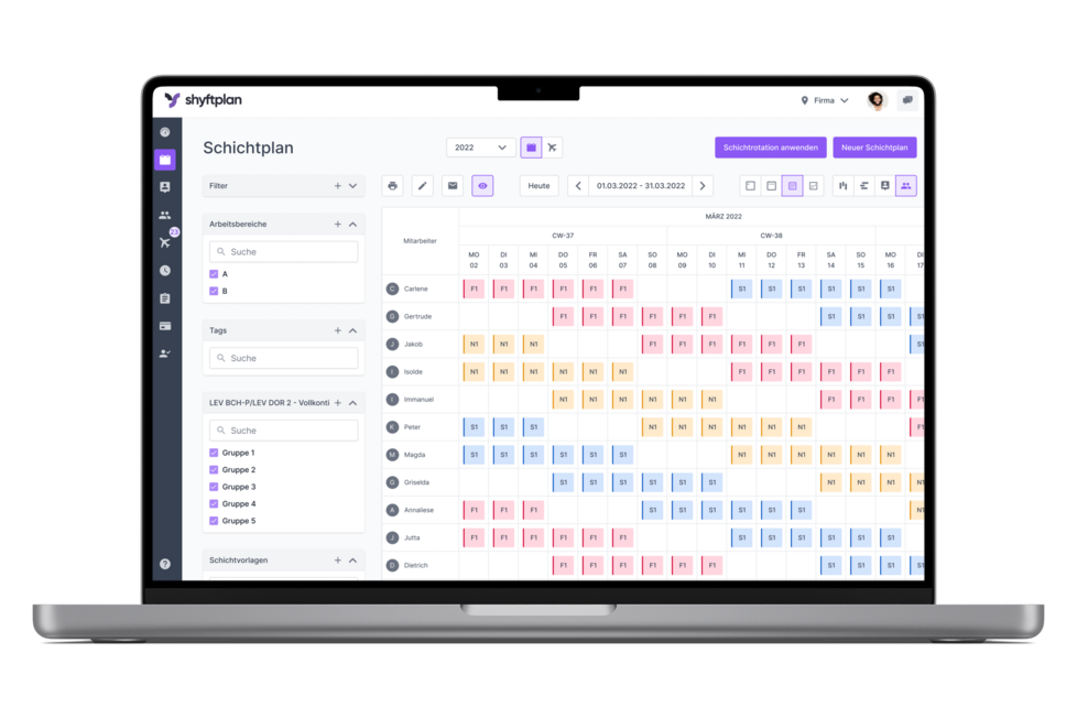 Die KI-unterstützte Cloud-Lösung Shyftplan unterstützt mittlere bis sehr große Unternehmen, bei der automatisierten Dienstplanung. Shyftplan bietet außerdem Lösungen für automatische Bedarfsanalysen, KI-gestützte Handlungsempfehlungen und verfolgt durch die mobile Mitarbeiter-App einen ganzheitlichen Ansatz.