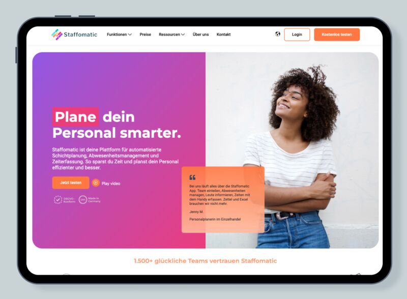 Staffomatic ist ein All-in-One-Tool, das automatisierte Dienstplanung und digitale Zeiterfassung miteinander kombiniert. Das intuitive System ermöglicht Personalplanern aus allen Branchen, die Einsatzzeiten des Teams zu planen oder zu ändern, Urlaubsanfragen automatisch zu genehmigen und Überstunden zu überwachen. Und das transparent und fair.