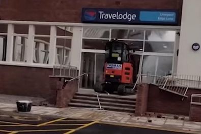 Eigentlich waren die Bauarbeiten im neuen Travelodge-Hotel in Liverpool bereits beendet, es fehlte lediglich der Feinschliff. Dann legte jedoch ein wütender Arbeiter los, der offenbar kein Gehalt bekommen hatte. Mit seinem Minibagger fuhr er wiederholt in die Lobby des Hauses und zerlegte dabei das Gebäude (mit Video).