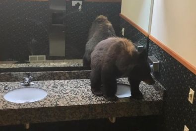 Im US-Bundesstaat Montana sind Begegnungen mit Bären keine Seltenheit. Was vor einigen Tagen jedoch die Gäste im Hotel Buck’s T-4 Lodge in der Stadt Big Sky erlebten, war dann doch eine Überraschung. Ein junger Schwarzbär hatte es sich in der Damentoilette auf den Waschbecken gemütlich gemacht.