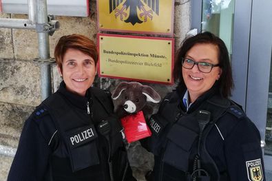 Schülerprojekt: Eine herrenlose Plüschmaus samt roter Umhängetasche ist in einem ICE 630 Kilometer durch Deutschland gereist. Zwei Bundespolizistinnen entdeckten sie kurz vor der Einfahrt in den Hauptbahnhof Bielefeld im Bordbistro.