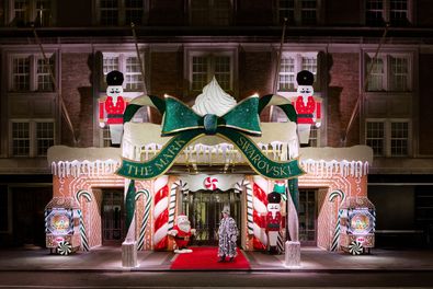 The Mark lässt in Zusammenarbeit mit Swarovski seine Fassade in glitzerndem Kristalldekor erstrahlen. Inspiriert ist die Ausstellung von klassischem Weihnachtsschmuck wie Nussknackern, Zuckerstangen und Lebkuchen.