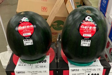 In Japan hat eine Densuke-Wassermelone bei einer Auktion den «Schnäppchenpreis» von umgerechnet rund 1800 Euro erzielt. Die 220 000 Yen sind weniger als ein Drittel des Rekordpreises, den eine solche Premium-Melone noch im vergangenen Jahr eingebracht hatte.