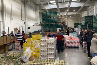 Am Samstag wurden bei Giesinger Bräu im Münchner Norden fast zweitausend Hilfspakte für Menschen in der Ukraine gepackt. Die Münchner Brauerei hatte für die Aktion Lagerhalle, Hubwagen und Tische sowie Verpflegung und Getränke kostenfrei zur Verfügung gestellt.