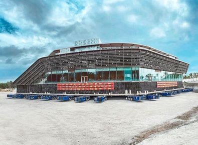 Wegen Umweltschutzauflagen musste in China ein 7.500 Tonnen schweres Hotel um 500 Meter versetzt werden. Der Transport wurde dann auf Rollen mit schwäbischer Technologie durchgeführt.