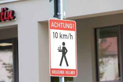 Kein Aprilscherz: Nicht vor Wildwechsel, sondern vor einer besonderen Spezies warnen Verkehrsschilder Autofahrer in Anklam in Mecklenburg-Vorpommern: Kellner kreuzen hier im Sommer die Fahrbahn. Langsames Fahren wird empfohlen - unverbindlich.