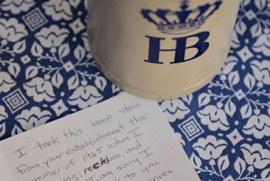Nach mehr als einem halben Jahrhundert hat eine 73-jährige US-Amerikanerin einen in ihrer Jugend geklauten Maßkrug an das berühmte Münchner Hofbräuhaus zurückgesandt. Der Steingutkrug sei völlig überraschend per Post eingetroffen, sagte Sprecher Tobias Ranzinger am Montag.