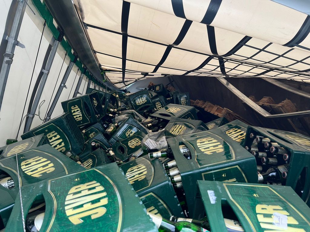 Ein Lastwagen mit 12.000 Liter Bier in Kisten ist bei Jever im Kreis Friesland von der Straße abgekommen und in einen Graben gerutscht. Dem Fahrer sei nichts passiert, teilte die Polizei am Freitag mit. Das Schwierigste nach dem Unfall vom Donnerstag seien die Aufräumarbeiten gewesen.