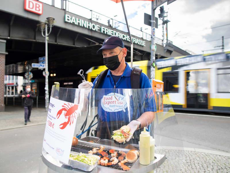 Berliner Plätze werden, neben Einheimischen und Touristen, auch von den sogenannten Grillwalkern bevölkert. Statt der üblichen Wurst, brutzeln die Griller derzeit allerdings Hummerschwänze. Die Schalentiere auf den mobilen Grills sind eine PR-Aktion.