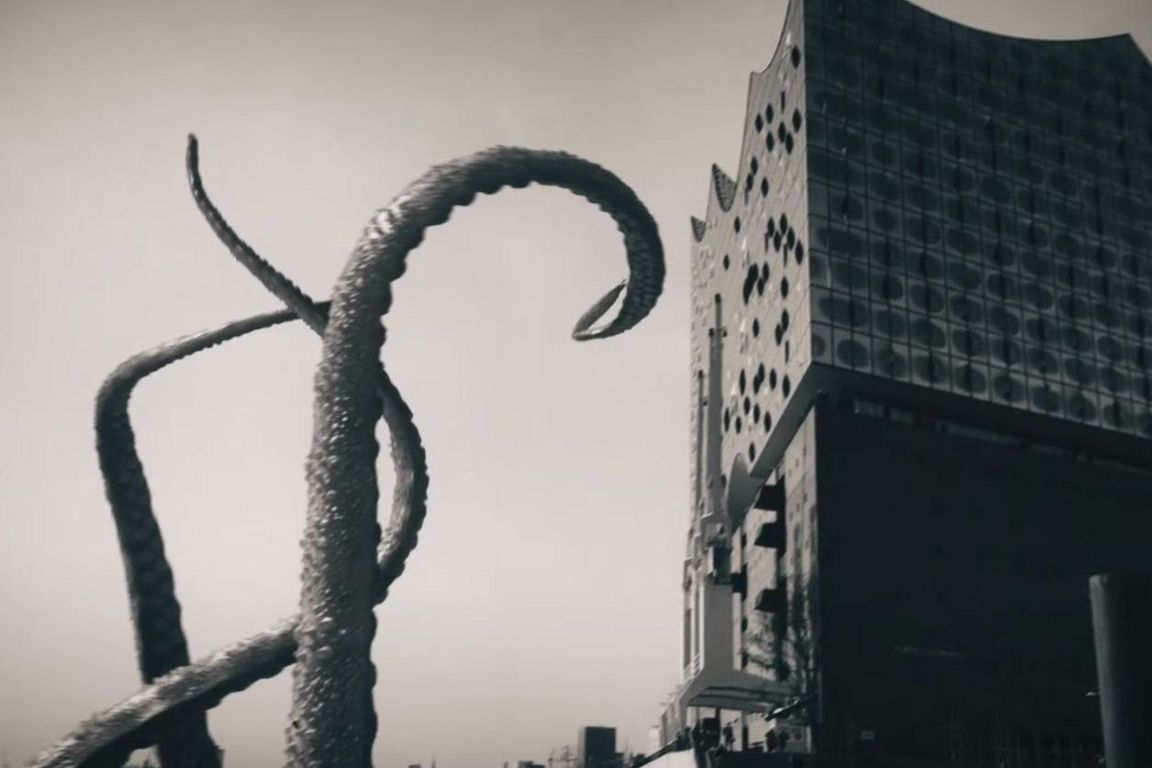 Das Video zeigt die Hansestadt im Ausnahmezustand: Ein Hubschrauber kreist über Hamburg, Polizei fährt mit lauten Sirenen durch die Stadt, die Bürger rennen panisch davon. Der Grund dafür sind riesige Tentakel, die sich aus der Elbe erheben. Der Oktopus hat jedoch nichts Böses im Sinn. Mit seinen Tentakeln stimmt er auf den weißen Aluminiumscheiben des Gebäudes Beethovens „Für Elise“ an.