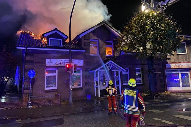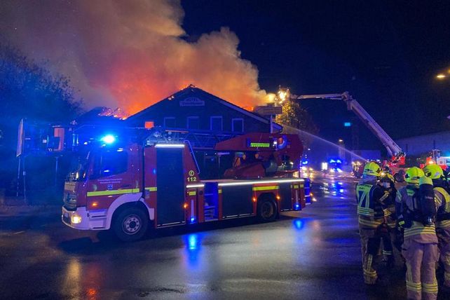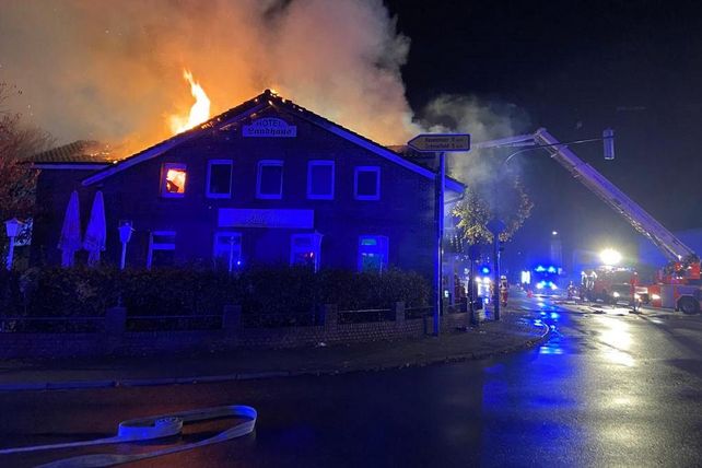 Beim Eintreffen der Einsatzkräfte in der Nacht zum Freitag habe der Dachstuhl des Hotels bereits vollständig gebrannt, teilte die Feuerwehr mit. In der Folge griff das Feuer auf einen weiteren Gebäudeteil über.