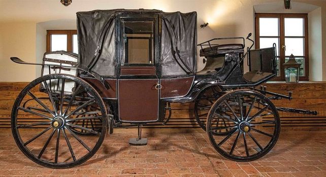 Der um 1900 gebaute Landauer mit schwarz-brauner Lackierung und eisenbeschlagenen Eschenholz-Sprossenrädern war zuvor im Besitz der Privatsammlung Schloss Fuschl in Österreich.