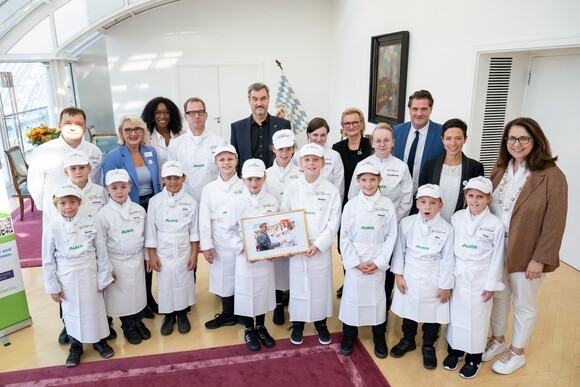 Fünfzehn Kinder im Alter von zehn bis zwölf Jahren aus der Region Eichstätt-Beilngries hatten als Teil der neuen Gruppe „Europa Miniköche Altmühltal“ Gelegenheit, ihren Schirmherrn am 17. Oktober in der Bayerischen Staatskanzlei zu treffen. Stellvertretend für 203 Bayerische Miniköche durften sie Söder die Urkunde der Schirmherrschaft persönlich überreichen. Das besondere „Schmankerl“: Vor Ort konnten sie ihr Können gleich unter Beweis stellen und servierten dem Ministerpräsidenten einen frisch zubereiteten Burger vom Altmühltaler Lamm mit Kürbis und Feta.