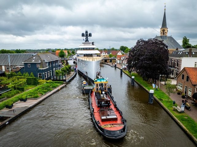 Die Passage durch die niederländischen Wasserstraßen erfordert höchste Präzision, da einige Abschnitte der Kanäle nur wenige Zentimeter breiter sind als die Yacht selbst. Solche Transfers werden in der Regel von einem Team erfahrener Experten durchgeführt, die die Yacht mithilfe von Schleppern und Pontons sicher durch die engen Passagen navigieren .