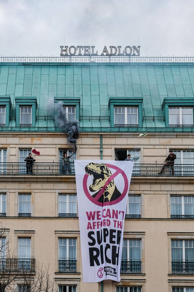 Die Gruppe Extinction Rebellion teilte mit, man habe auf die soziale Ungleichheit in Verbindung mit Klima- und Biodiversitätskrise aufmerksam machen wollen.