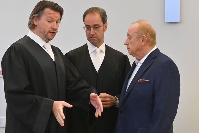 Schuhbeck erschien am Mittwochmorgen in weißem Hemd und dunkelblauem Sakko. Er wirkte blass und mitgenommen, als er den Gerichtssaal mit seinen beiden Anwälten betrat und sich den Kameras stellte. Er selbst bestätigte nur seinen Namen, Beruf und die Namen seiner Eltern, äußerte sich ansonsten aber nicht. (dpa)
