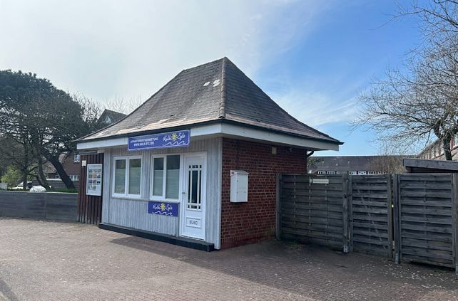 Das kleine Backsteinhäuschen mit circa 25 bis 27 Quadratmetern Nutzfläche liegt in bester Lage: an der Norderstraße, direkt neben der Asklepios Nordseeklinik, in der Nähe einer Bushaltestelle und nur zehn Gehminuten vom Strand entfernt. Noch vor wenigen Jahren wurden dort Pommes und Würstchen verkauft, später zog eine Eisdiele ein. Zuletzt wurde ein Teil als Büro einer Apartmentvermietung genutzt, während im anderen Teil Eis der Kultmarke „Florida“ angeboten wurde.