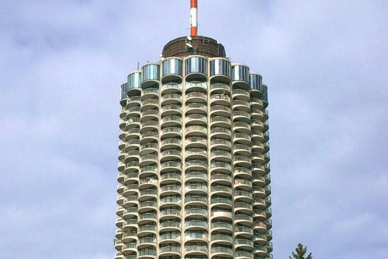 Der Augsburger Hotelturm in der Imhofstraße, mit 115 Metern und 167 Metern inklusive Antenne Augsburgs höchstes Gebäude, wurde 1971/72 für die Olympischen Spiele errichtet. Die Immobilie mit 35 Stockwerken ist seit 2024 als Baudenkmal geschützt und beherbergt Wohnungen, Büros, ein Hotel und Gewerbeflächen.