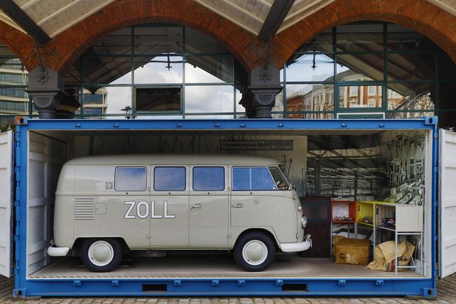 Gleich 100 Kilo Kokain entdeckten Hamburger Zöllner 2018 in einem Oldtimer-Bulli aus dem Jahr 1978. Das grün-weiße Fahrzeug sollte aus Brasilien importiert werden. Ohne Wissen des alten und neuen Bulli-Besitzers hatten Unbekannte das Rauschgift darin versteckt. Vielleicht war den Tätern nicht klar, wie vertraut der deutsche Zoll mit VW-Bussen dieser Art ist. Ein graues Dienstfahrzeug - ebenfalls ein T1 aus dem Jahr 1962 - ist in einem Container vor dem Museum zu sehen.