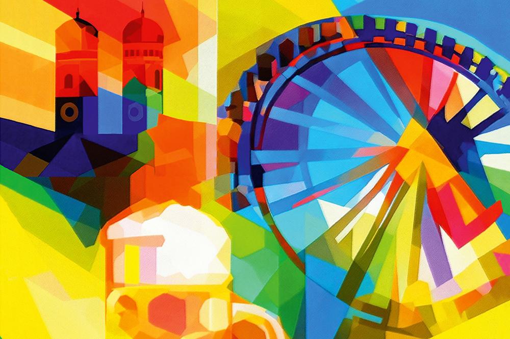 Das Motiv zeigt die üblichen Wiesn-Insignien: Riesenrad, Frauentürme, eine Tuba für die Blasmusik, eine Maß Bier und eine Breze - das alles in einem knallbunten Farbenrausch durcheinandergewirbelt. Der Festleiter und Wirtschaftsreferent Christian Scharpf (SPD) hatte sich an den Stil von Lyonel Feininger erinnert gefühlt. Er lobte bei der Vorstellung vergangene Woche, der Künstler verbinde gekonnt Tradition und Moderne, lenke mit seiner leuchtenden Farbigkeit den Blick auf sich und wecke echte Emotionen beim Betrachter.