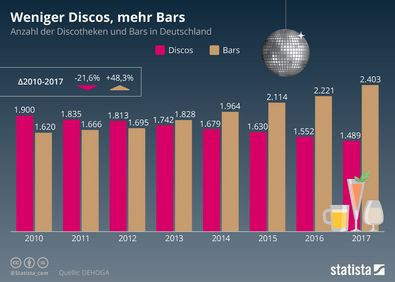 Discos und Bars sind populäre Orte zum Feiern und Entspannen. In den letzten Jahren geht die Entwicklung allerdings dahin, dass Bars beliebter werden und Discos in der Gunst der Feierwilligen sinken.