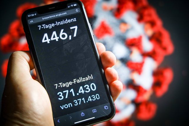 Die Sieben-Tage-Inzidenz ist erneut gestiegen und hat einen Höchststand erreicht. Das Robert Koch-Institut (RKI) gab die Zahl der Neuinfektionen pro 100.000 Einwohner und Woche am Sonntagmorgen mit 446,7 an.