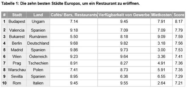 Aus Europäischer Sicht sind die besten Städte, um ein Restaurant zu eröffnen