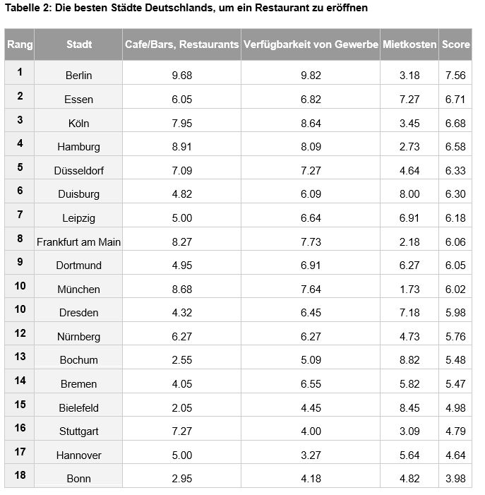 Die besten Städte, um ein Restaurant in Deutschland zu eröffnen sind